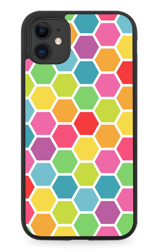 Colourful Beehive Pattern Rubber Phone Case Cover Hexagon Hexagons Shapes Rainbow G461