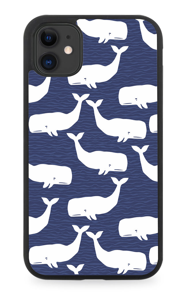 Whale Pattern Rubber Phone Case Patterning Whales Humpback Sperm Deep Blue BW83