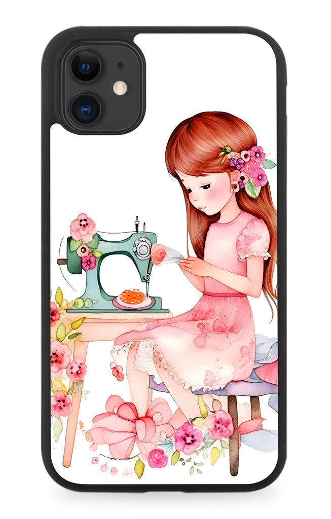 Sewing Little Girl Rubber Phone Case Making Dresses Clothes Designer Maker BH96