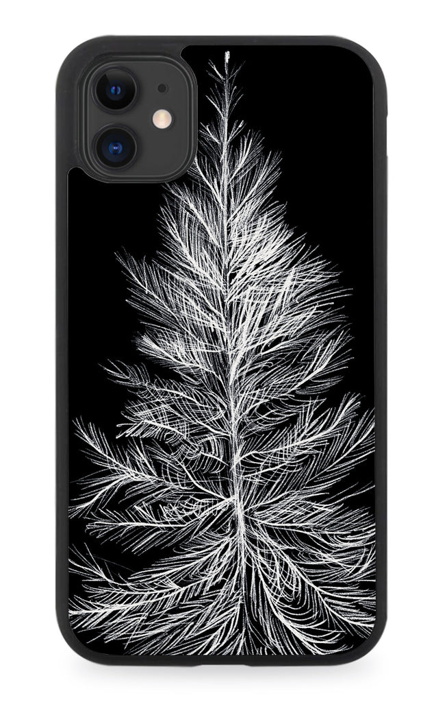Snow Christmas Tree Rubber Phone Case White Coloured On Black Snowy Festive BL44