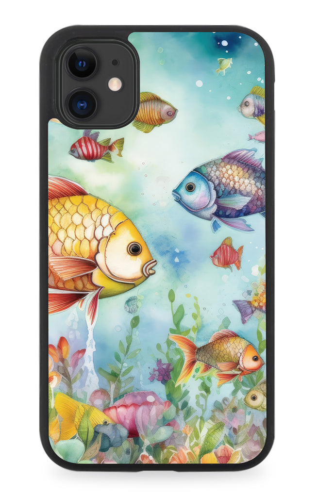 School Of Fish Rubber Phone Case Fishes Under Water Watercolor Sea Schools BW44