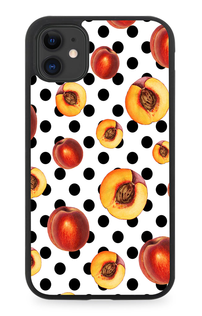 Retro Polka Dot Peach Rubber Phone Case Peaches Fruit Fruits Black and White BR96