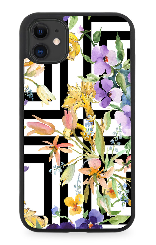 Retro Floral Design Rubber Phone Case Flowers Black and White 60s Vibe Style BS54