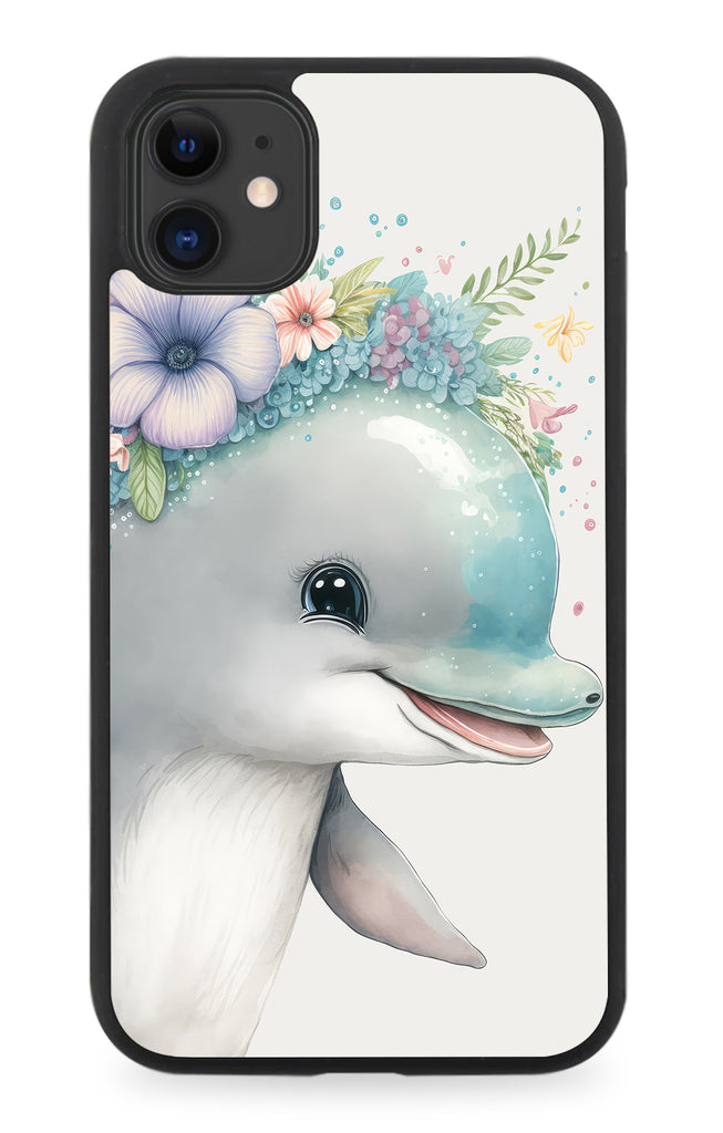 Dolphin In Flower Crown Rubber Phone Case Dolphins Face Watercolour Painting BJ31