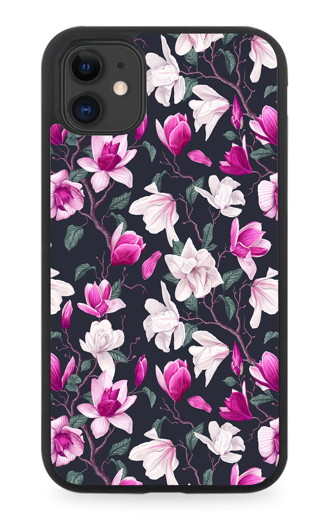 Dark Purple Floral Magnolias Pattern Rubber Phone Case White Pink Magnolia BK70