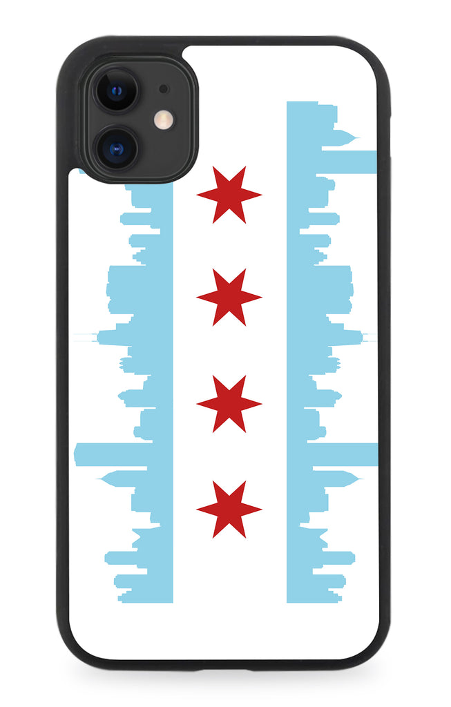 Chicago Flag Rubber Phone Case Flags Skyline Stars Blue City Silohuette P029
