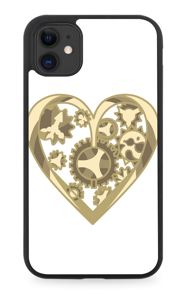 Golden Gears Love Heart Rubber Phone Case Gear Mechanism Design Style Gold BL38