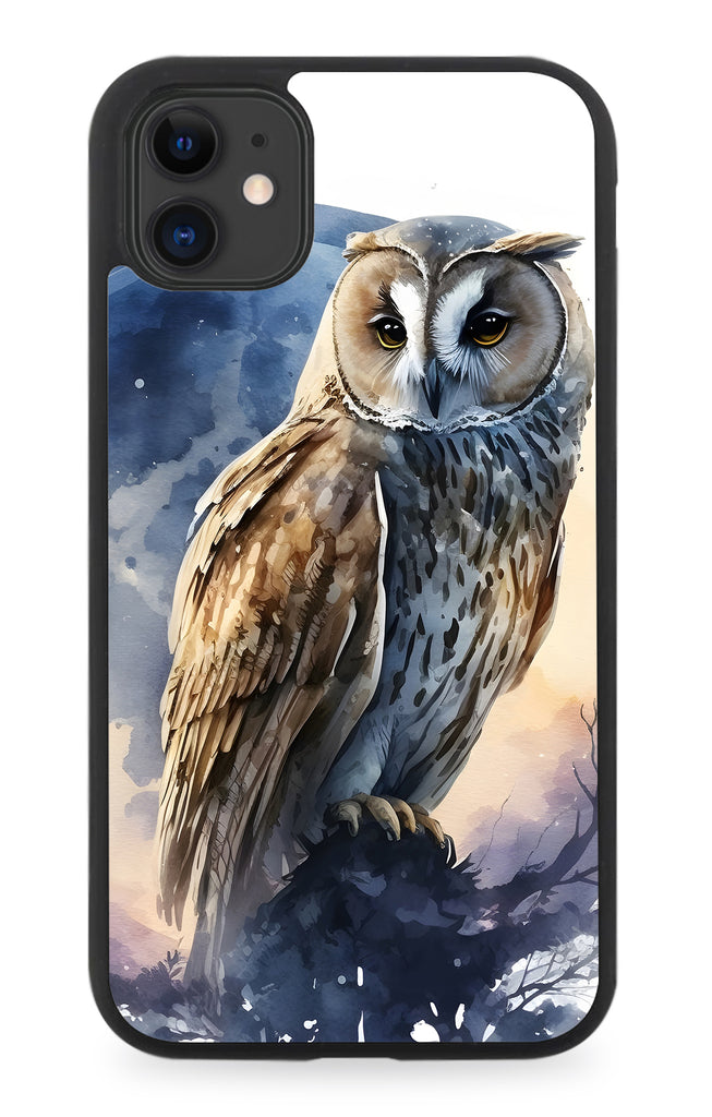 Owl In Front Of The Full Moon Rubber Phone Case Owls Birds Night Sky Space LP16