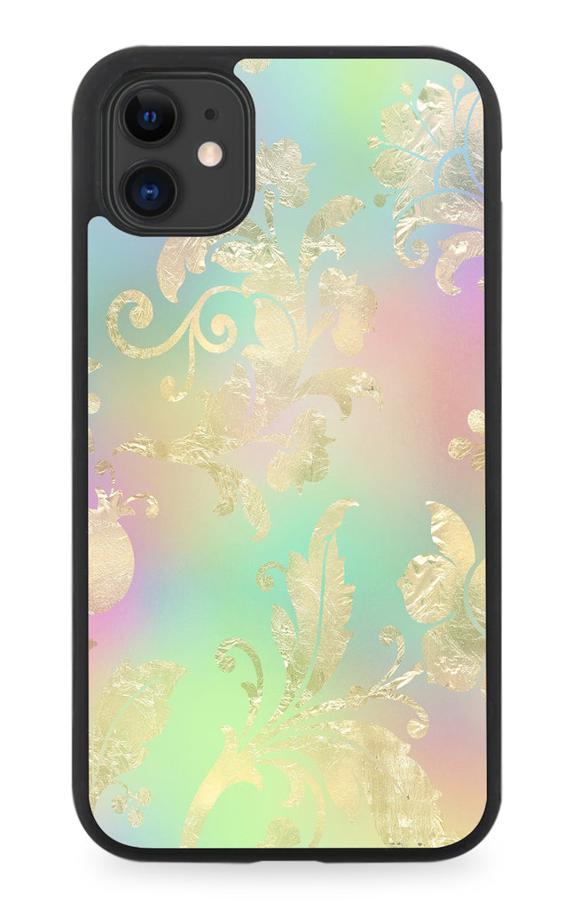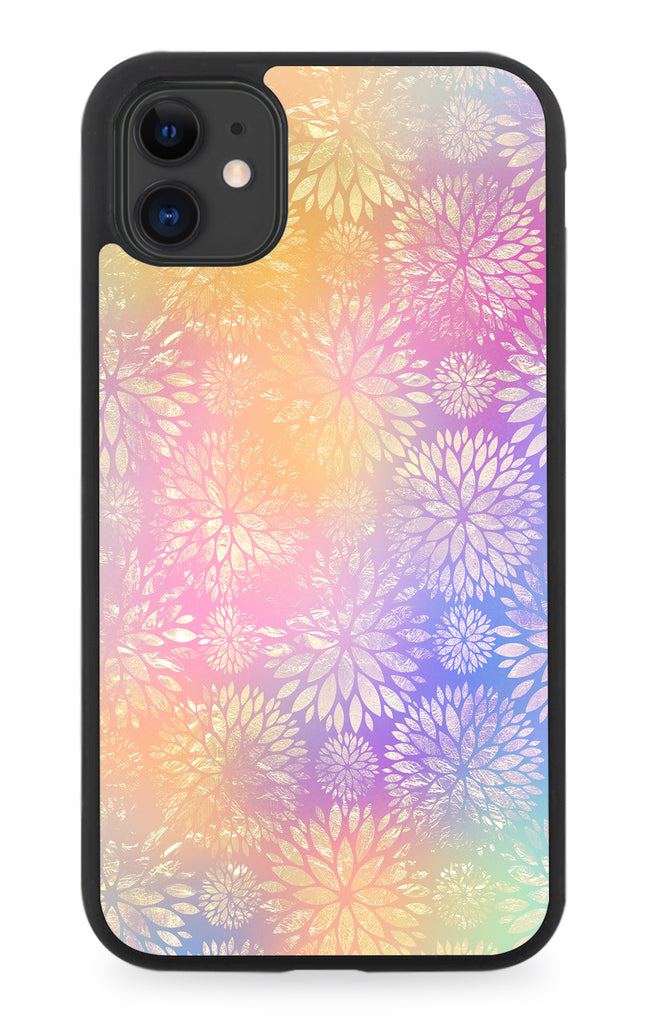 Golden Floral Stencilling Rubber Phone Case Rainbow Faded Style Colours Q637K