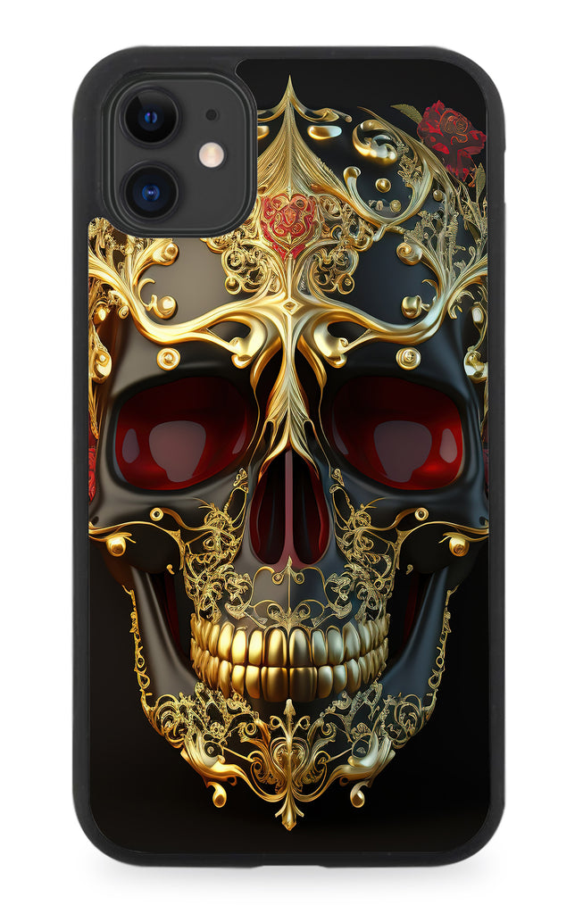 Golden Sugar Skull Picture Rubber Phone Case Skulls Head Gold Coloured Goth Q704E