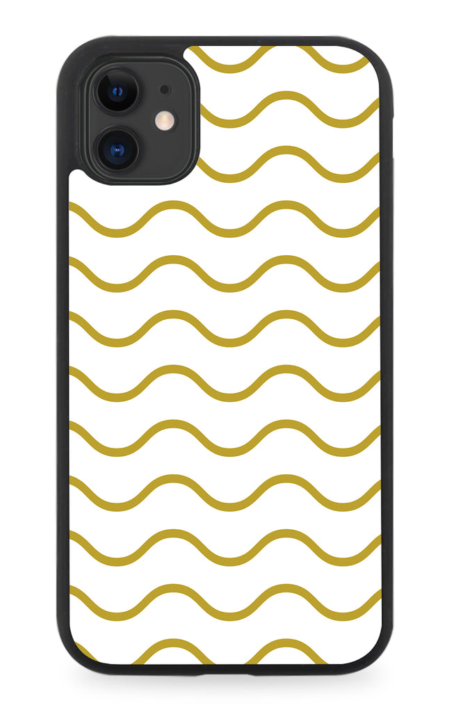 Golden Wavey Pattern Rubber Phone Case Waves Lines Line White Gold Curvy Q863G