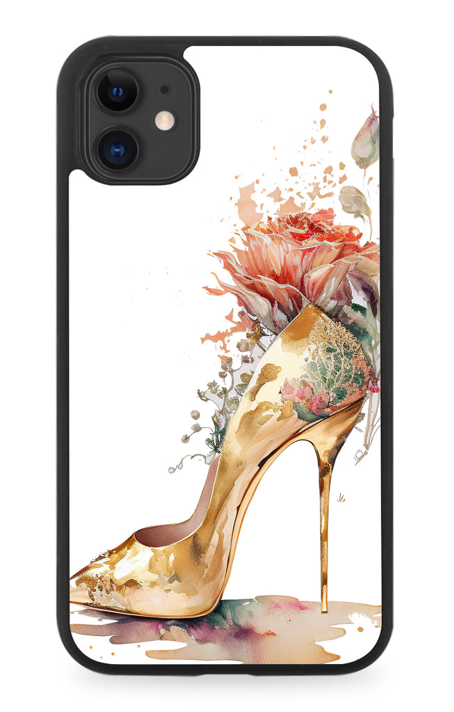 Golden Heel Floral Rubber Phone Case Flowers Out Of High Heels Shoes Shoe Q903C