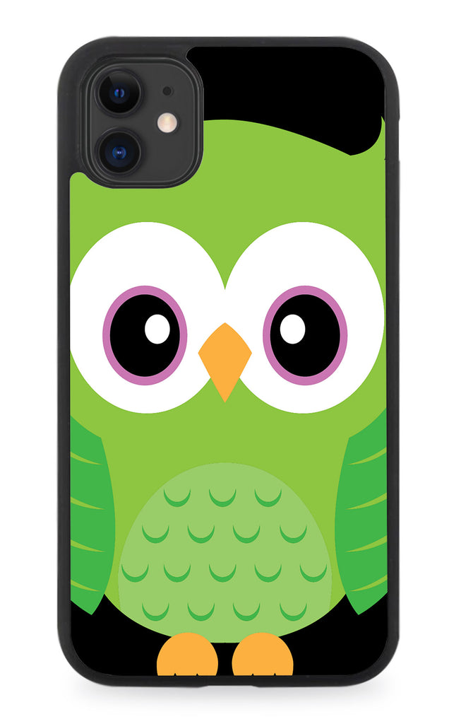 Children's Green Cartoon Owl Rubber Phone Case Cartoonish Style Owls Bird BR44