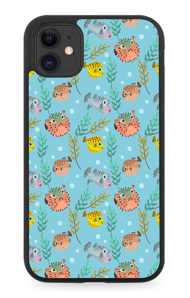 Cartoon Puffer Fish Rubber Phone Case Puffers Pattern Blue Sea Puffing Blow BJ37