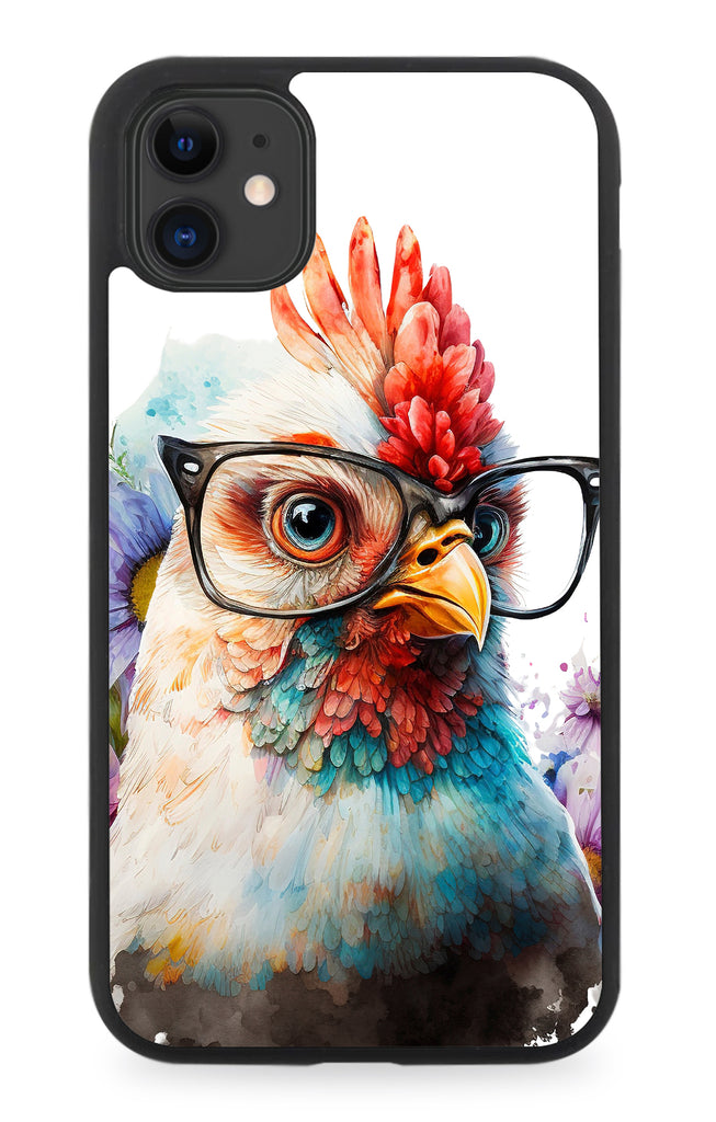 Chicken In Glasses Watercolour Picture Rubber Phone Case Chickens Head Face Q581A