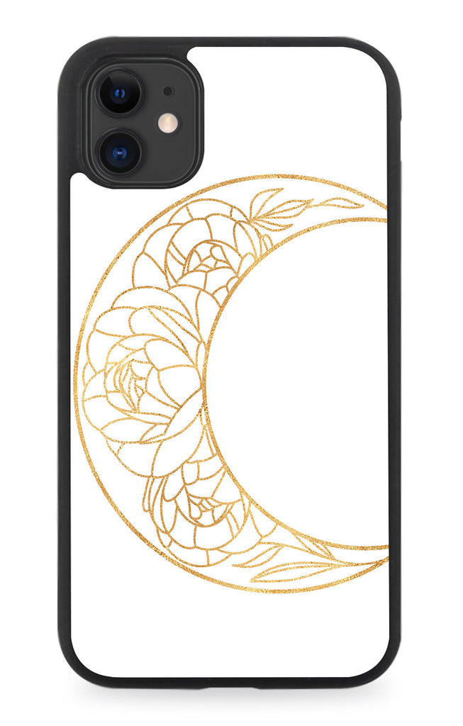 White and Gold Half Moon Stencilling Rubber Phone Case Stencil Stencils P332D