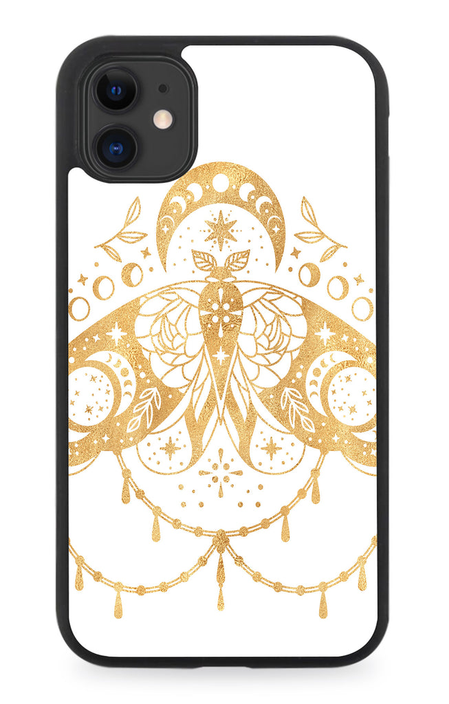 White and Gold Moon Moth Rubber Phone Case Golden Coloured Girls Girl P332F
