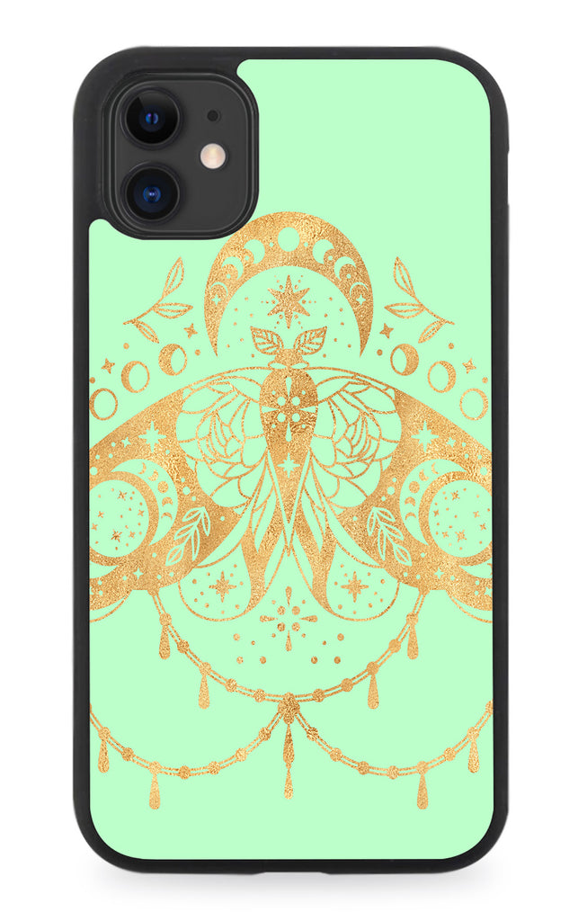 Pastel Green and Gold Moon Moth Rubber Phone Case Luna Style Symbol Shape P332F