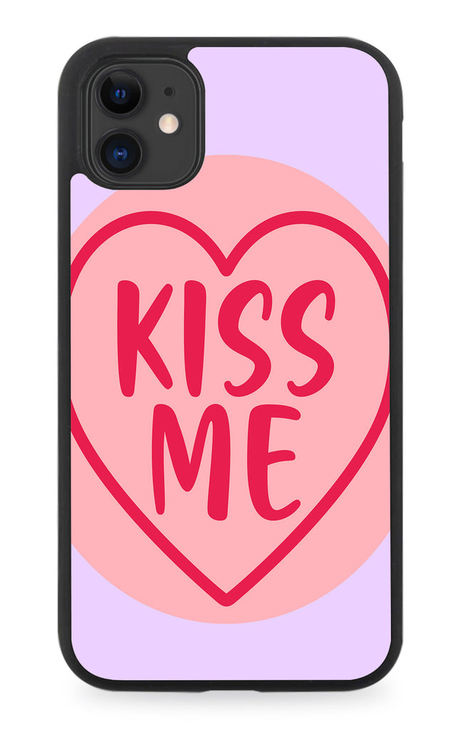Funny Kiss Me Love Rubber Phone Case Retro Sweets Purple Words Heart Shape P275B