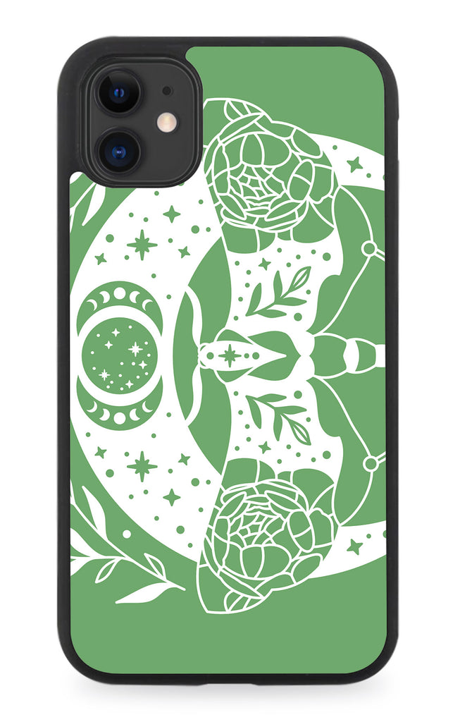 Green and White Moon Moths Rubber Phone Case Moth Moons Magical Look Style P333E