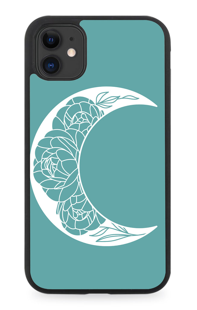Dark Turquoise and White Luna Half Moon Rubber Phone Case Floral Roses P333B