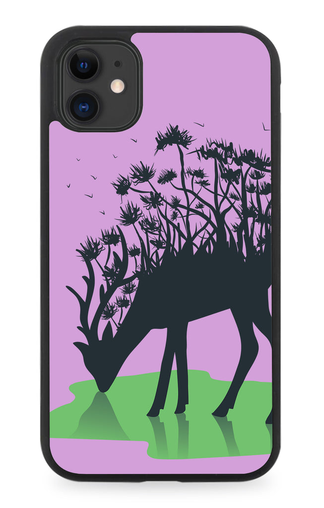 Deer Flower Garden Rubber Phone Case Deers Shape Outline Flowerbed Spring M304