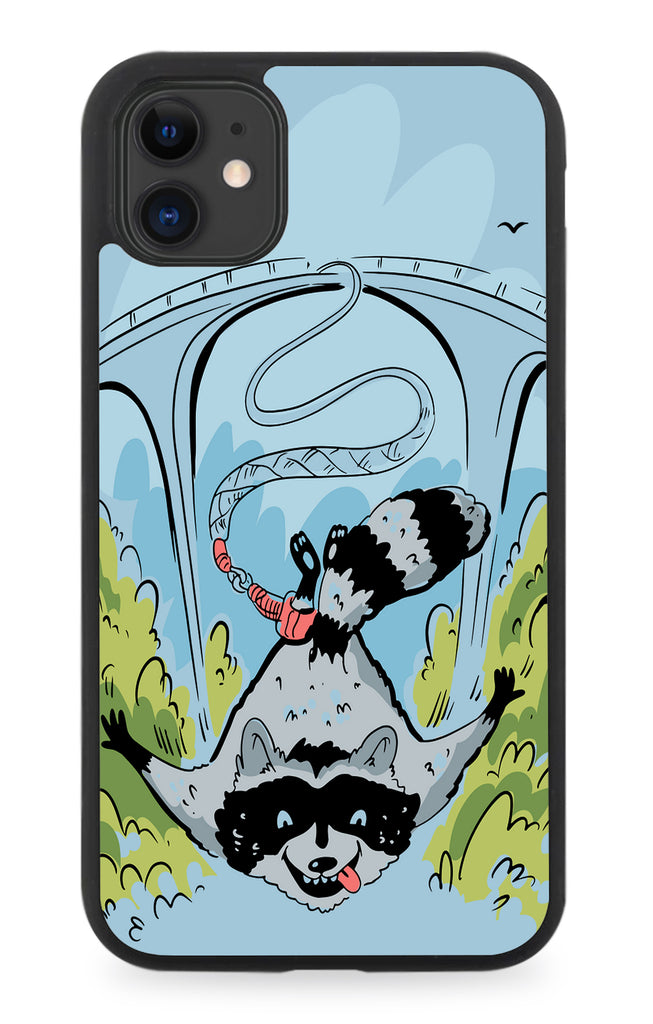 Raccoon Bungee Jumping Rubber Phone Case Raccoons Jump Funny Rope Dive P224
