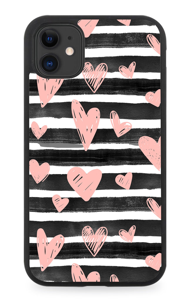 Rose Gold Coloured Love Heart Shapes Rubber Phone Case Stripey Pattern P262G