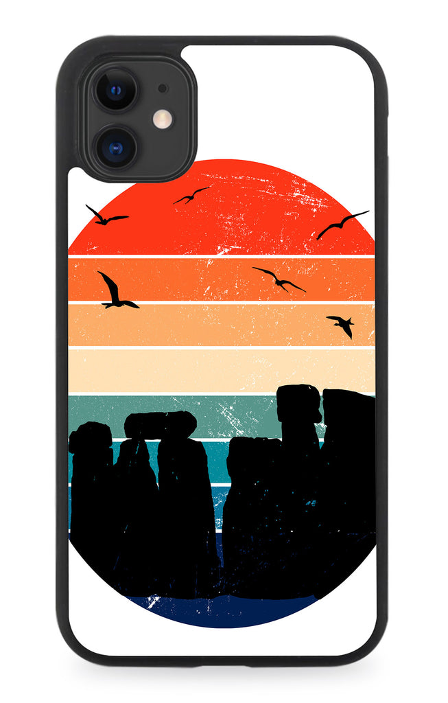 Retro Stonehenge Silohuette Rubber Phone Case Landmark Stone Henge Shape P368