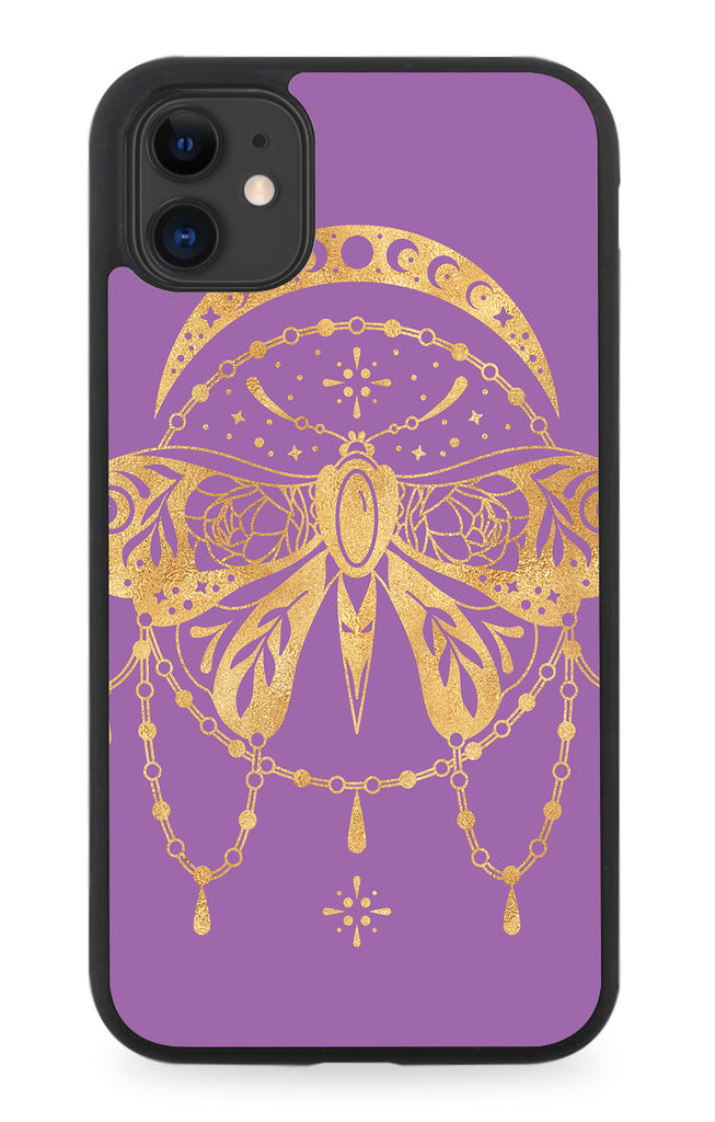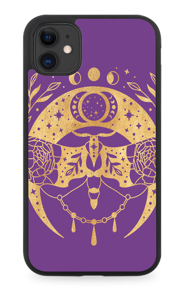 Purple and Gold Mystical Moth Moon Rubber Phone Case Moths Style Design P332E