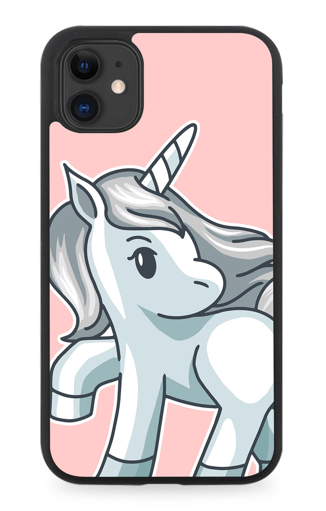Silver Unicorn Cartoon Rubber Phone Case Childrens Childs Grey Coloured Pink M719