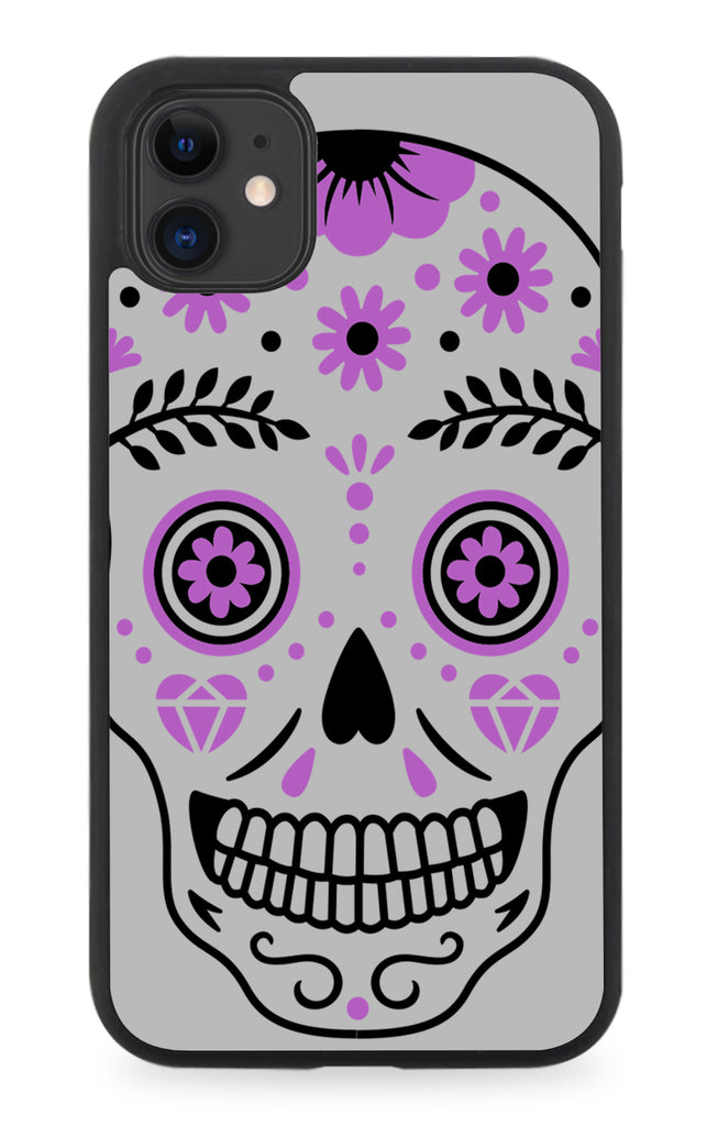 Purple and Grey Sugar Skull Design Rubber Phone Case Lines Line Skulls Head M641