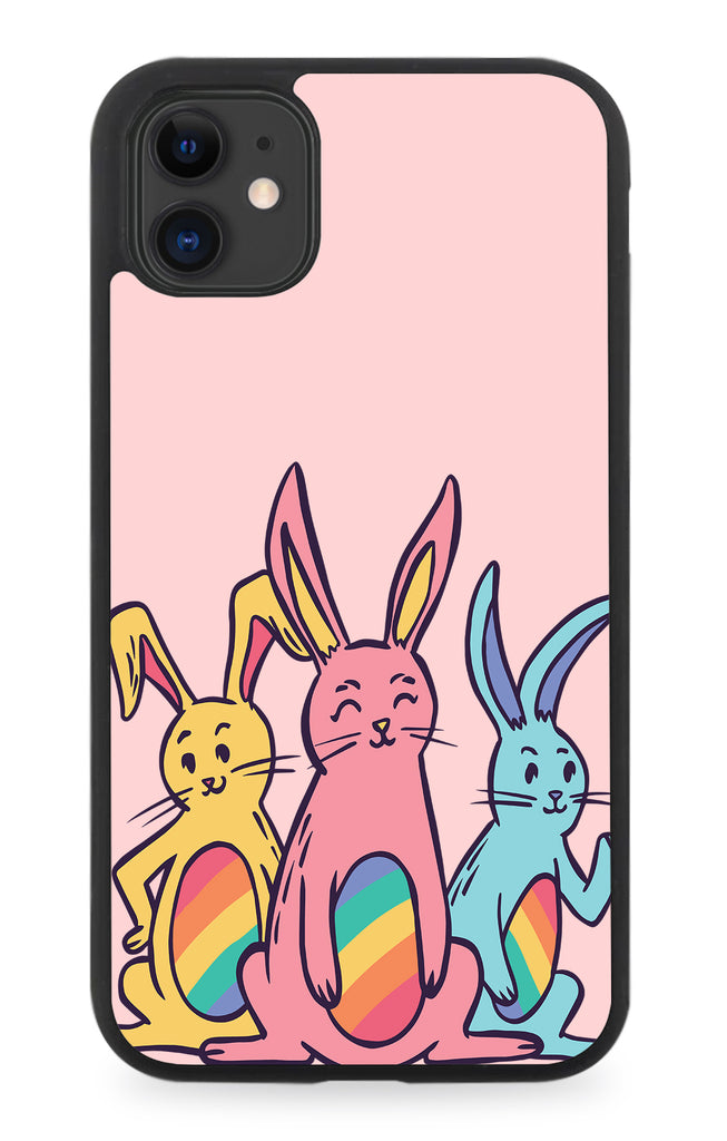 Rainbow Bunnies Rubber Phone Case Bunny Rabbit Rabbits Easter Picture Belly M644