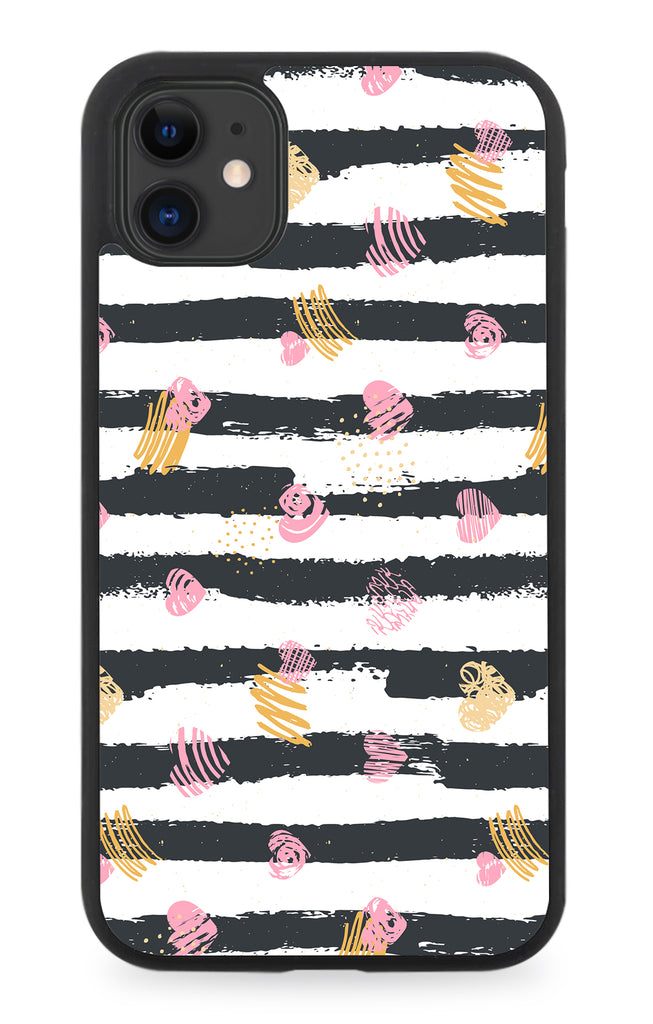 Retro Black and White Stripes Rubber Phone Case Striped Love Heart Squiggles M877