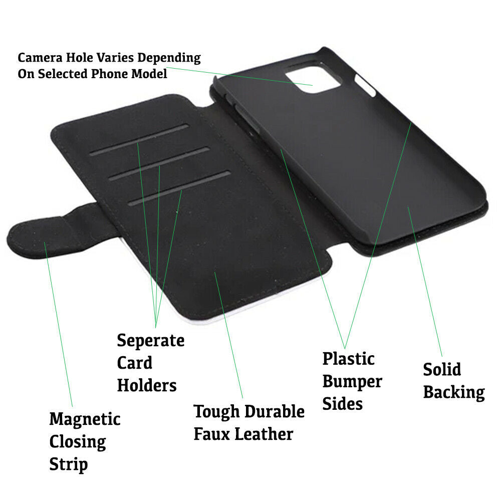 This strong, durable flip wallet phone case — also known as a book cover, folio wallet, or full front cover case — offers complete protection and everyday practicality. It features a secure magnetic clasp, two convenient credit card slots, and an integrated stand that’s perfect for hands-free viewing on the go.