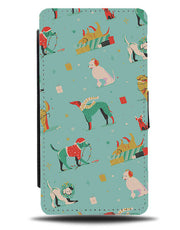 Festive Christmas Pattern Flip Wallet Case Dog Dogs Doggy Puppy Design N936 - Flip Wallet Cases