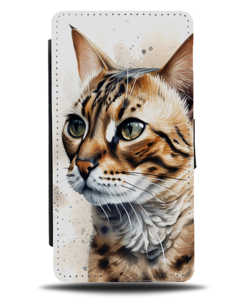 Bengal Cat Flip Wallet Case Cats Face Bengals Breed Watercolour Artwork Art DJ43 - Flip Wallet Cases