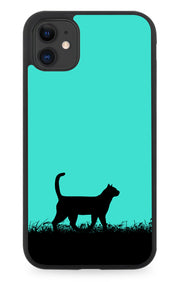 Cat Silhouette Rubber Phone Case Cats Kitten Turquoise Green i264 - Rubber Phone Case