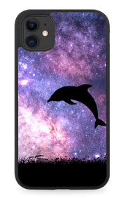 Dolphin Silhouette Rubber Phone Case Dolphins Space Stars Sky i176 - Rubber Phone Case