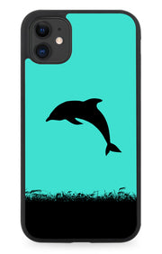 Dolphin Silhouette Rubber Phone Case Dolphins Turquoise Green i269 - Rubber Phone Case
