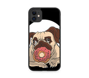 Doughnut Eating Pug Dog Rubber Phone Case Pugs Cartoon Pink Doughnuts Pugs K147 - Rubber Phone Case