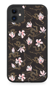 Floral Snakes Pattern Rubber Phone Case Brown Black Snake Flowers Petals C171 - Rubber Phone Case