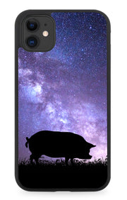 Pig Silhouette Rubber Phone Case Pigs Galaxy Moon Universe i220 - Rubber Phone Case