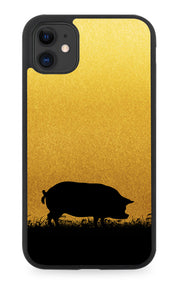 Pig Silhouette Rubber Phone Case Pigs Gold Golden Black Coloured I003 - Rubber Phone Case