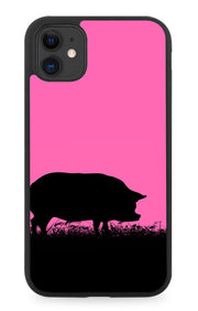 Pig Silhouette Rubber Phone Case Pigs Hot Pink Black Coloured I034 - Rubber Phone Case
