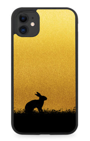 Rabbit Silhouette Rubber Phone Case Rabbits Gold Golden Bunny I005 - Rubber Phone Case