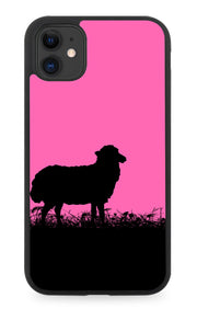 Sheep Silhouette Rubber Phone Case Lamb Lambs Hot Pink Black I038 - Rubber Phone Case