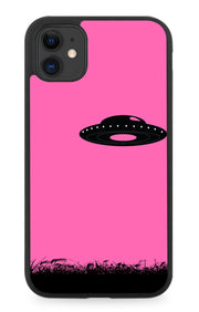 UFO Silhouette Rubber Phone Case UFOs Hot Pink Aliens Alien I040 - Rubber Phone Case
