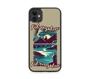 Vintage Fishing Poster Design Rubber Phone Case Fish Silhouette Mens J348 - Rubber Phone Case