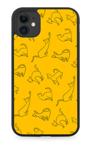 Yellow Sketched Cat Outlines Shapes Rubber Phone Case Silhouettes Cats K772 - Rubber Phone Case
